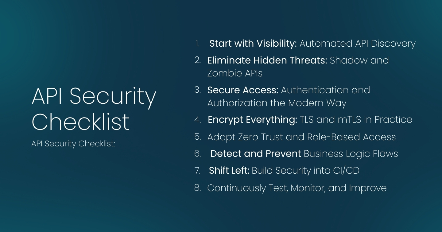 To help teams put this framework into action, APIsec offers a free downloadable PDF checklist summarizing all eight sections along with a visual infographic for easy reference during code reviews or compliance audits.