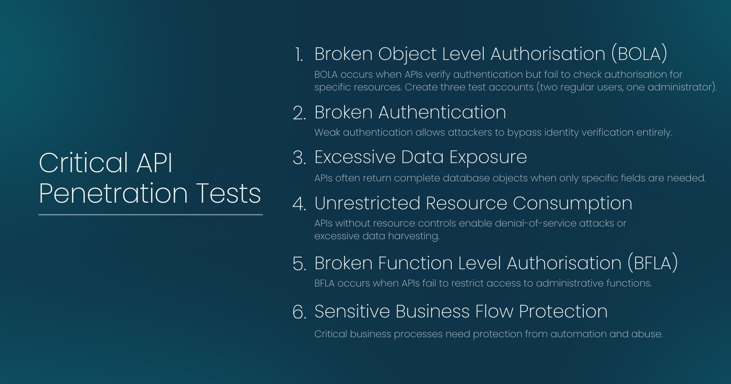 API breaches happen because automated scanners can't detect business logic flaws. When T-Mobile exposed 37 million records, and Optus leaked 9.8 million customer details, both breaches stemmed from authorisation failures that no scanner flagged. This checklist provides 10 critical penetration tests that reveal the vulnerabilities attackers actually exploit, complete with testing methods, real breach examples, and the tools you need to find these issues before attackers do.